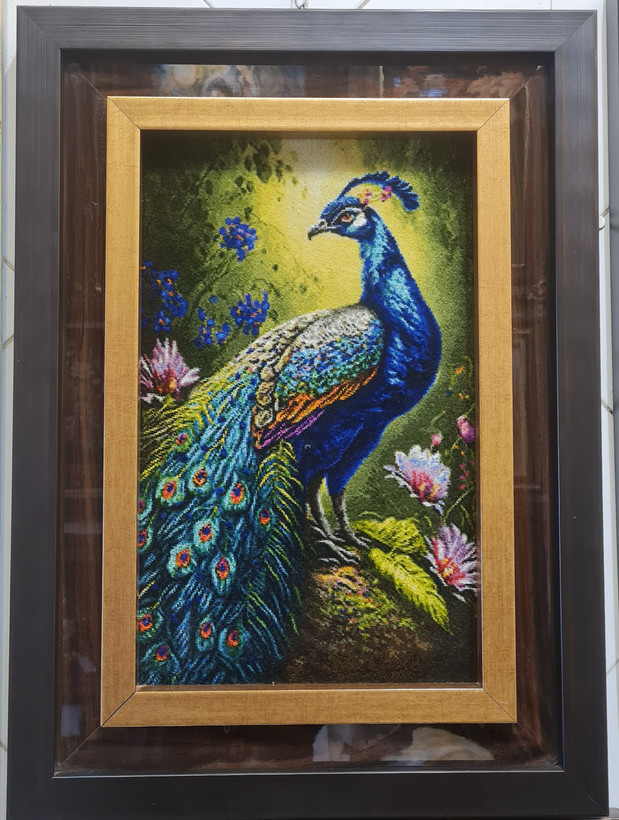 تابلو فرش دستباف تبریز طرح طاووس چله نخ