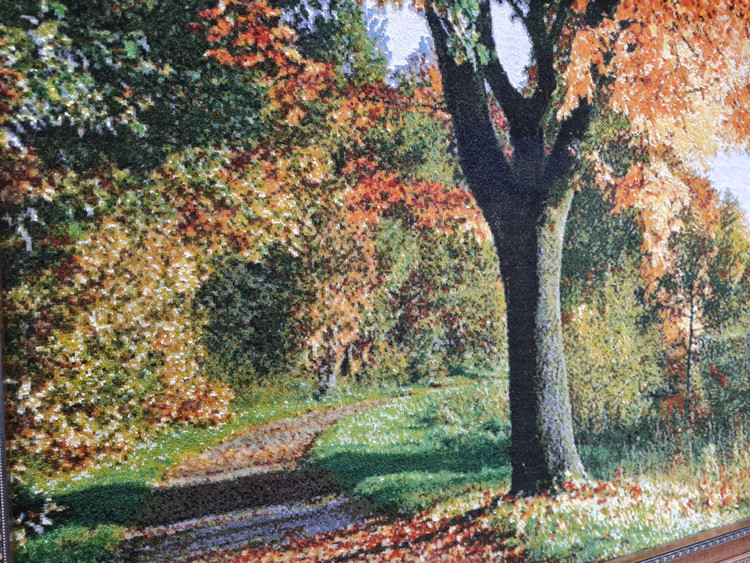 تابلو فرش دستباف چله ابریشم طرح پاییز مرداب بزرگ عرضی درجه یک
